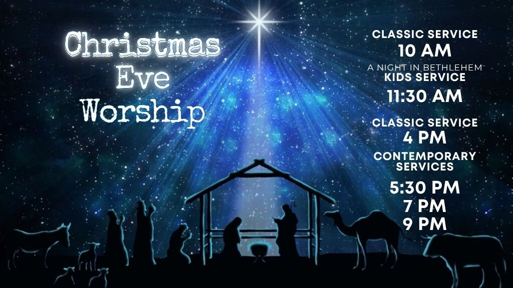 - Celebration Services at 5:30, 7, and 9 PM. Contemporary Christmas music by the Praise Band with Candleligthing at all services